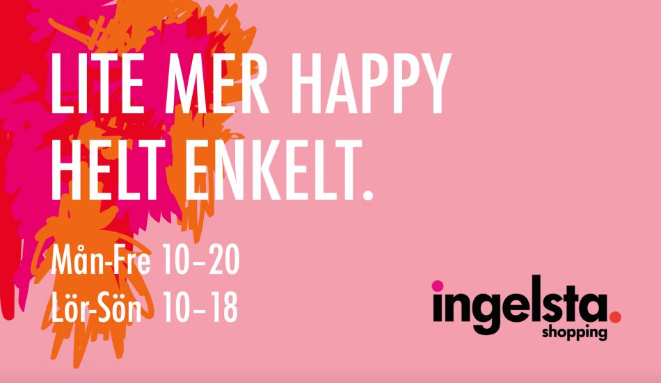Ingelsta Shopping är ett köpcenter. Men de är så mycket mer än en låda full av butiker. De ser sig själva som möjliggörare, som vill skapa värde för sina kunder. Ett värde som inte bara handlar om lyckan över en nyinköpt blus, ett par skor eller en kaffebryggare. Utan ett värde som tillför något mer till själva livet. En vänlig blick. Ett trevligt samtal. Eller en upplevelse som berör. Ett värde som gör oss lite mer HAPPY helt enkelt.